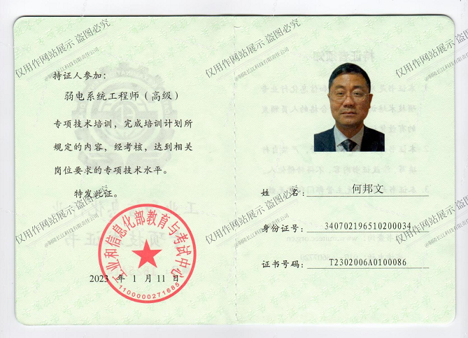 弱電系統(tǒng)高級(jí)工程師證書